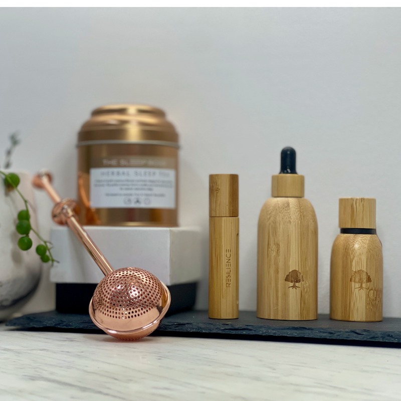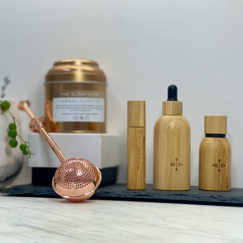 At the heart of this pack is our Herbal Sleep Tea, an all-natural blend of calming herbs designed to relax the nervous system and prepare you for deep, restorative rest. Paired with a Gold Tea Infuser for effortless brewing and a blend of your choice to our ultimate wellness trio: Essential Oil Roller, Pure Essential Oil, and Luxury Oil Serum, the Serenity Pack allows you to customize your experience and create the self-care ritual that fits your lifestyle.