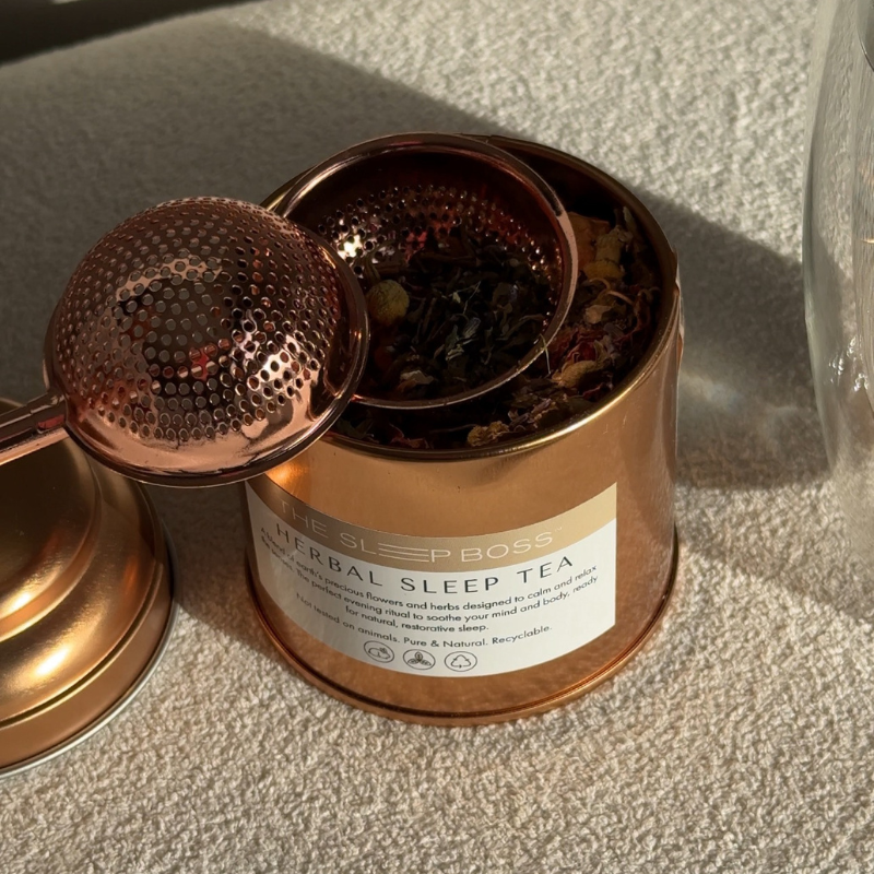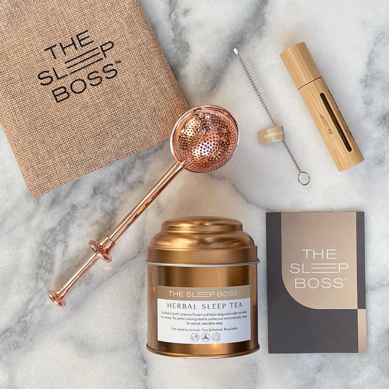 Upgrade Option: Upgrade to the Full Calm Ritual Kit which includes a gold tea infuser and Sleep Essential Oil Roller