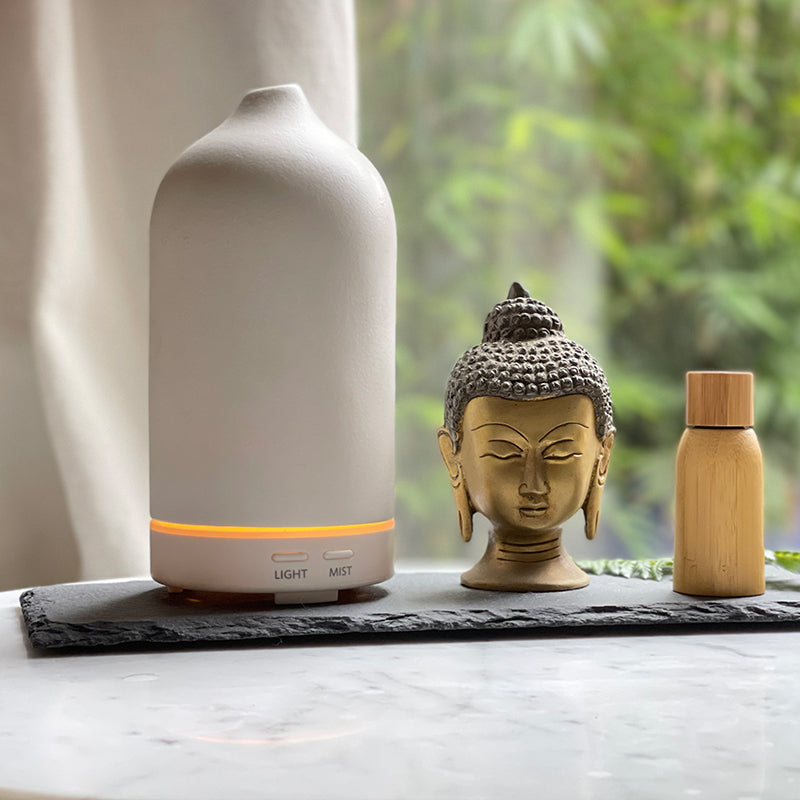 Turn on the diffuser to fill your space with a calming or invigorating aroma.